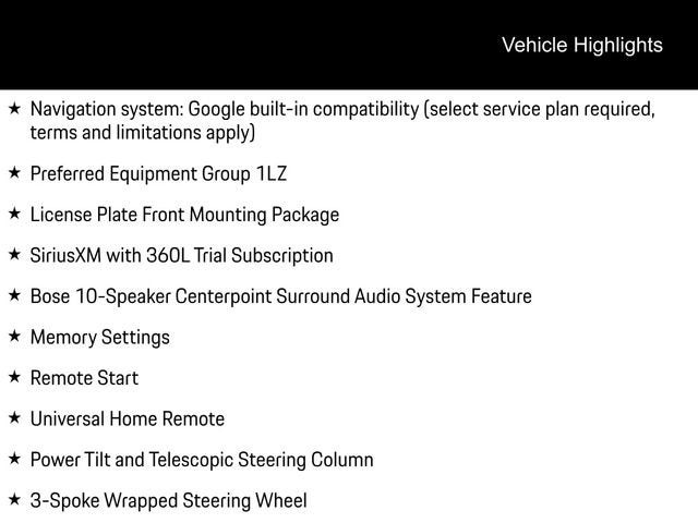 4WD, Gray Leather, 1st and 2nd Row Color-Keyed Carpeted Floor Mats, 20 x 9 Polished Aluminum Wheels, 3-Spoke Wrapped Steering Wheel, 3rd Row 60/40 Power-Folding Split-Bench Seat, Auto-Dimming Inside Rear-View Mirror, Bose 10-Speaker Centerpoint Surround Audio System Feature, Bright Front and Rear Door Sill Plates, Chrome Door Handles with Body-Color Strip, Chrome Mirror Caps, Color-Keyed Carpeting Floor Covering, Dual Exhaust System, Floor Console, Front Bucket Seats, Front LED Fog Lamps, Front Pedestrian and Bicyclist Braking, Frontal Driver and Outboard Passenger Airbags, Heated 2nd Row Outboard Seats, Heated Steering Wheel, LED Headlamps with LED Daytime Running Lamps, LED Tail Lamps, License Plate Front Mounting Package, Magnetic Ride Control Suspension, Memory Settings, Navigation system: Google built-in compatibility (select service plan required, terms and limitations apply), Outside Heated Power-Adjustable Mirrors, Power Release 2nd Row Bucket Seats, Power Tilt and Telescopic Steering Column, Preferred Equipment Group 1LZ, Rear Power Liftgate, Remote Start, SiriusXM with 360L Trial Subscription, Universal Home Remote, Wireless Phone Charging.